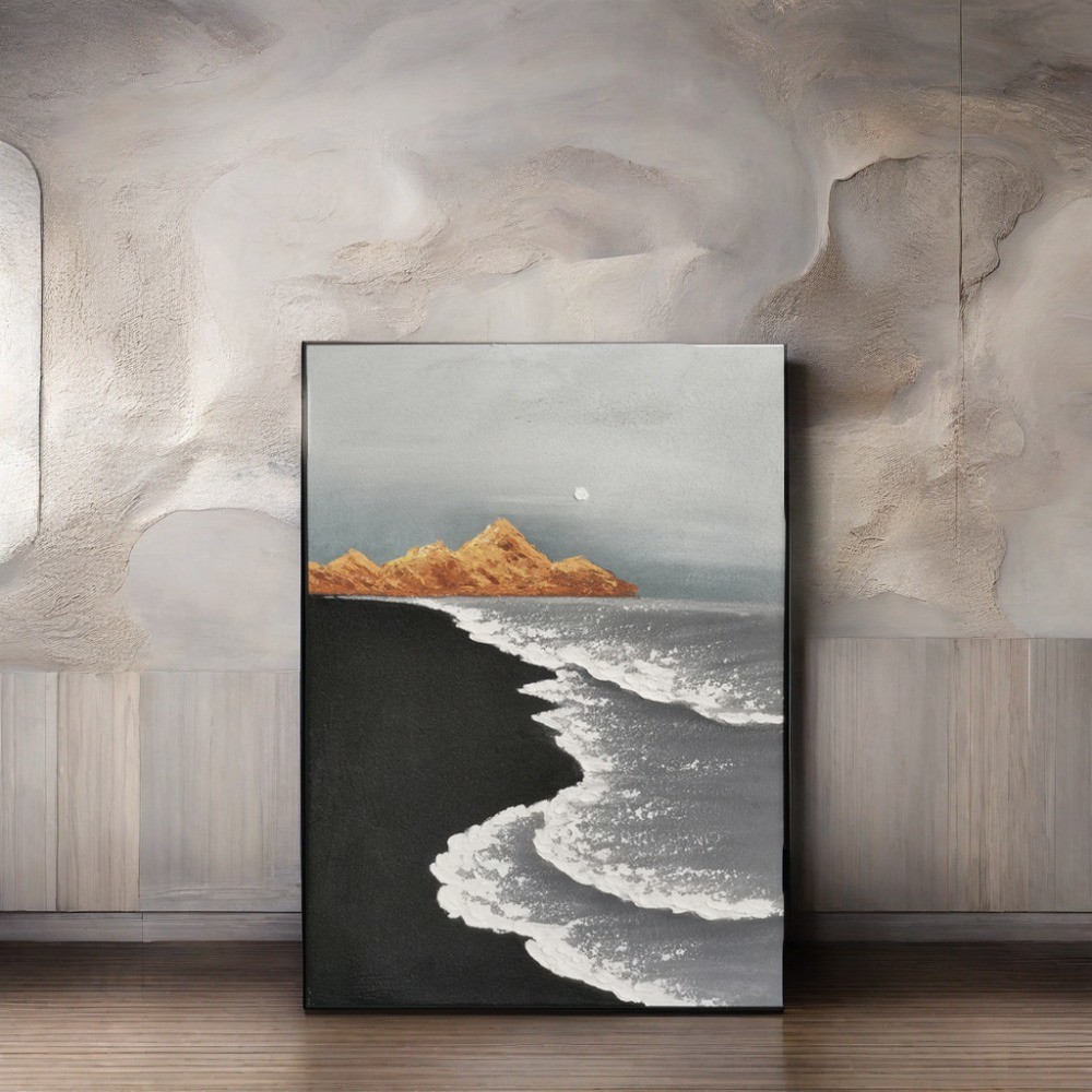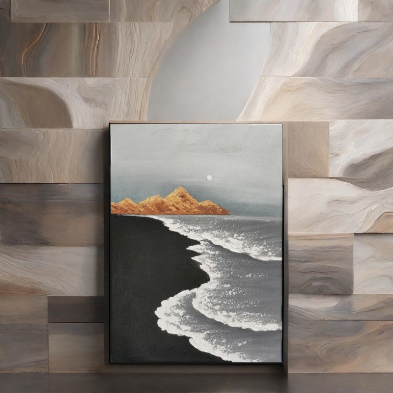 हाथ से चित्रित आधुनिक वॉल आर्ट 3 डी समुद्री लहर बनावट रेत समुद्र तट अमूर्त राहत पेंटिंग लिविंग रूम सजावट के लिए कैनवास सामग्री 1