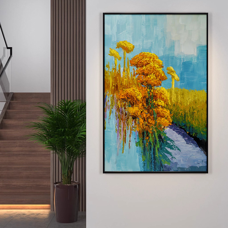 हाथ से चित्रित तेल कैनवास पेंटिंग स्वर्ण फूल आधुनिक रंगीन सजावट लिविंग रूम के लिए दीवार लटकन घर की सजावट 1